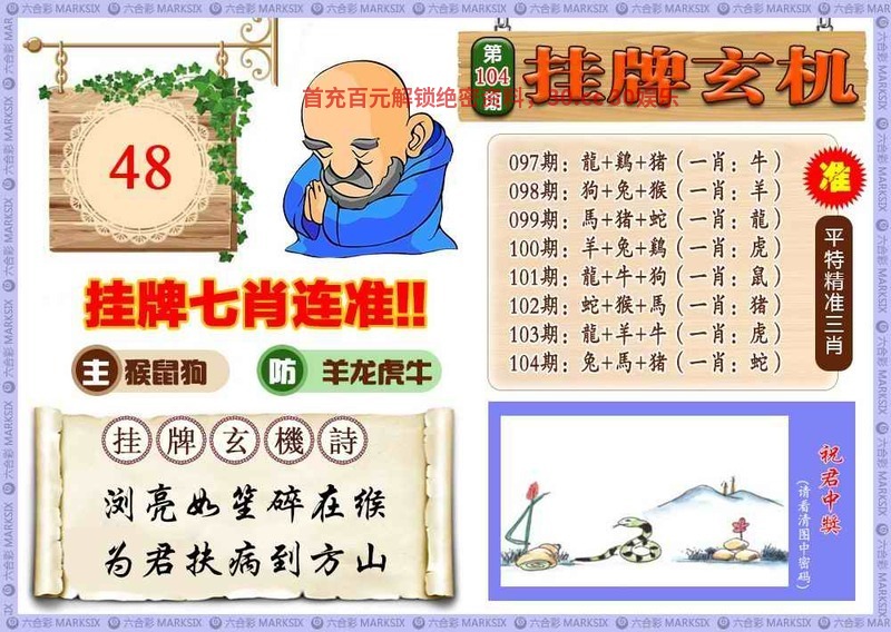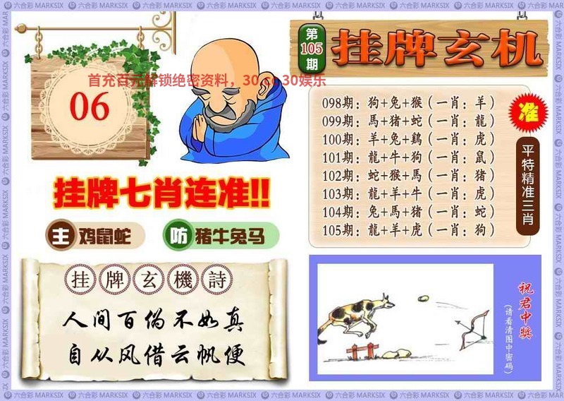 107期另类马会大门口挂牌一句话:牛羊鸡马争先来 ==[马会送19]
